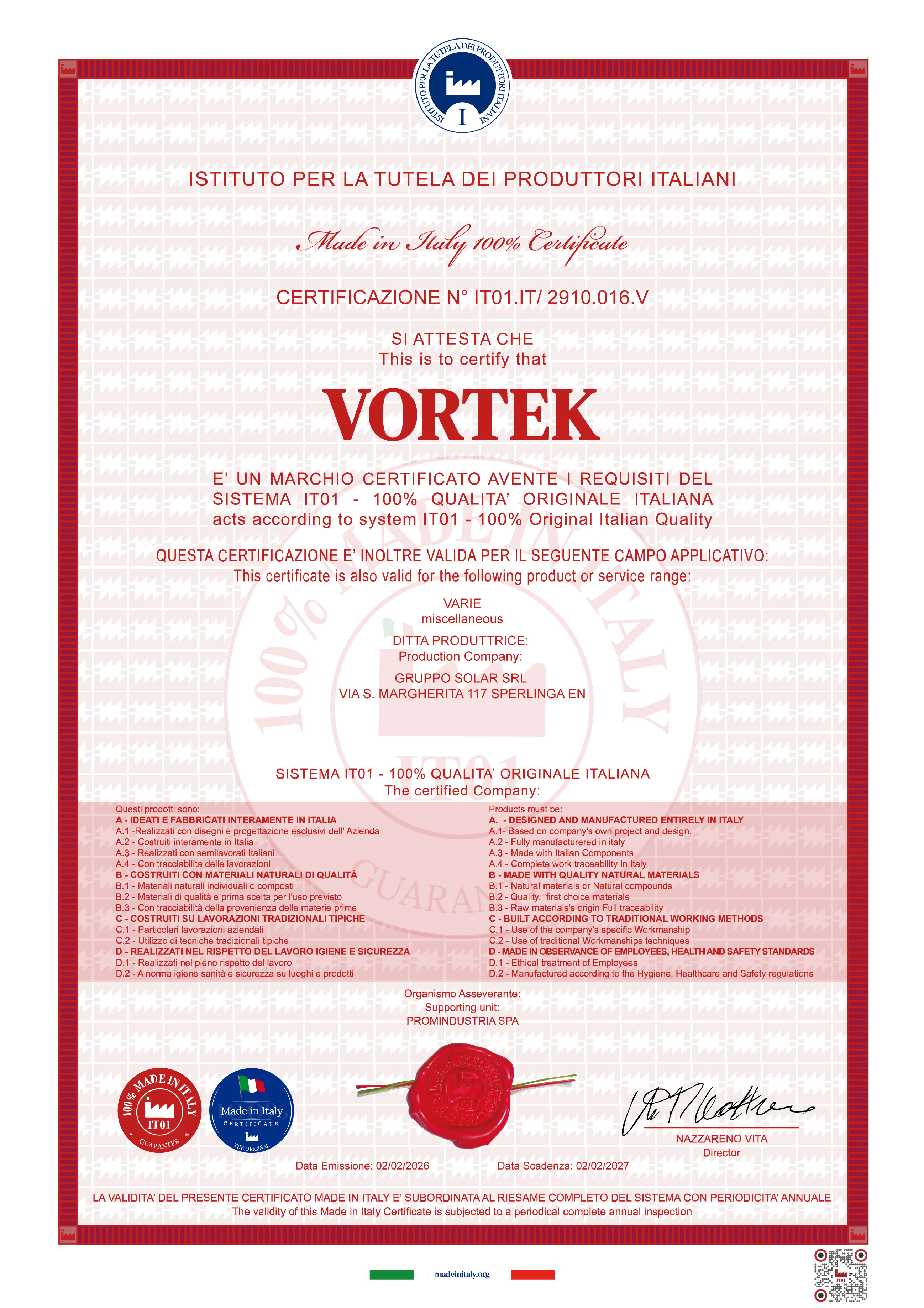 L'inoltro della richiesta di certificazione non costituisce automaticamente la concessione della certificazione. Le Aziende devono possedere i requisiti essenziali previsti dal disciplinare e dall'appendice di settore. Il comitato tecnico ITPI si riunisce mensilmente per le deliberazioni.